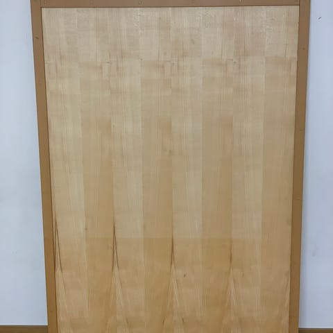 Bordplaten har en utsparing på den ene siden som kan passe til plassering mot vegg eller rundt søyle/skap. Overflaten er i lyst treverk. Til bordet følger det med 6 stk svarte bordben i metall.