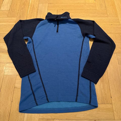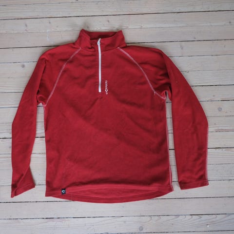 Devold genser for barn i størrelse 164. Genseren har høy hals med kort glidelås foran. Fargen er rosa med oransje detaljer. Passer til hverdagsbruk eller ulike fritidsaktiviteter. Laget for barn rundt 14 år, med normal passform og lange ermer.