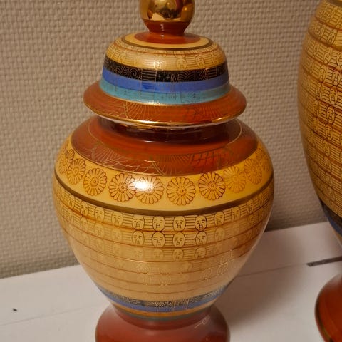 Små vaser med enkelt mønster. 9,5 cm høyde. 300kr for begge- 150kr for en.