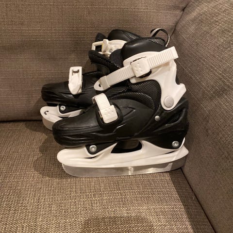 Matrix skøyter i justerbar størrelse (ca. 30–33) i hvit og svart. Modellen har hard ytterskall med plastmateriale og mykere innersko for bedre støtte og komfort. Lukkes med lisser, borrelåsrem og justerbar spenne over ankelen for stabilitet. Egnet som allround skøyter for barn til bruk på isbaner og uteis.