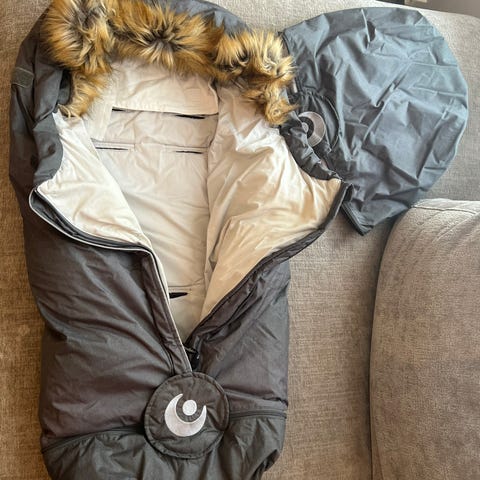 Pent brukt, varm og praktisk dunsovepose til bruk i vogn sen høst og vinter. Original oppbevaringspose følger med. Kan endre lengde etter hvert som barnet vokser.