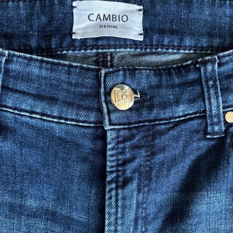 Paris Jeans fra Cambio i en lys blå vask i str. 40. Flared jeans i myk og stretchy kvalitet. Buksen sitter nært og slipper fra kneet og ned. Preget gullknapp, og naggeldetalj på fremlomme og bak. En superfin jeansmodell!