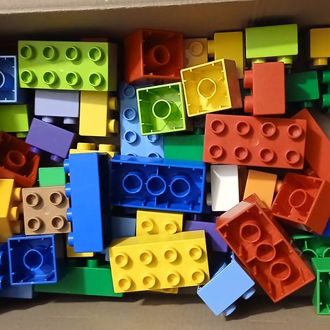Fargerik blanding av Duplo klosser.