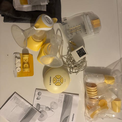 Svært lite brukt Medela Swing elektrisk brystpumpe med tilhørende flasker og tilbehør.