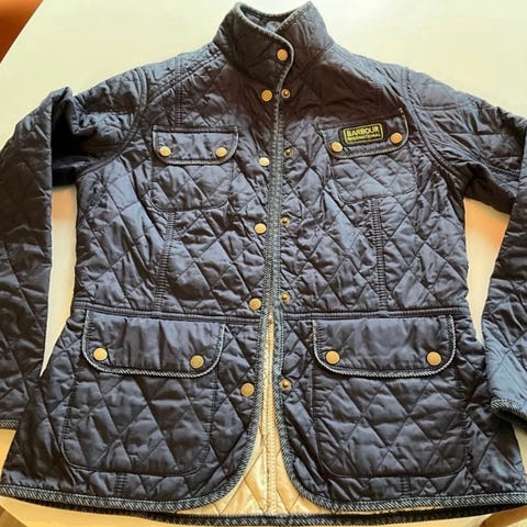 Ralph Lauren jakke for dame i størrelse XS. Jakken er blå og laget i polyester, med vattert og quiltet mønster. Den har belte i livet, knappelukking og glidelås foran, samt flere lommer med klaff og glidelås. Skulderpartiene har kontrastfelt. Ytterstoff og fôr er i 100 % polyester, med dekor i imitert semsket materiale. Passer som lett ytterjakke i overgangssesonger.