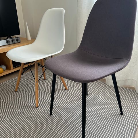 Brukte stoler. Mangler flere knotter under føttene. Kan sikkert erstattes. Men mistet under flytting. Har kun stått lagret. Noen merker på sete. Selges samlet 5 stykk. Må hentes. Kr 500 totalt.