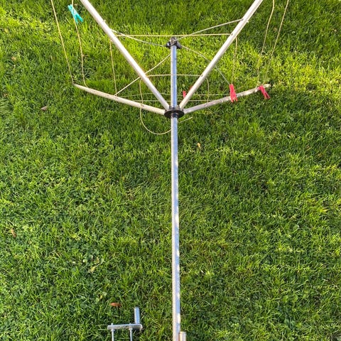 1.8 meter i diameter, meget god sprett. Tåler mye uten å bli slitt, trenger en vask.