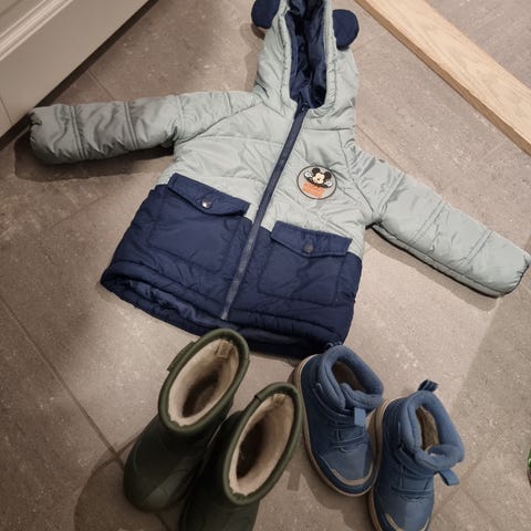 Bergensjakke str 122 - er søla noe maling på albue som ikke går av og det er teipet et lite hull. Ellers fin som ekstrajakke