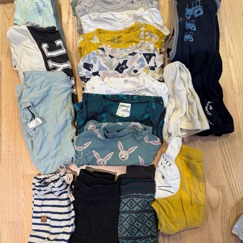 Stor nyfødt pakke gutt! Pent brukt selges fastpris 350,- Ammekluter, smekker, strømpebukser, nattdrakter, et body og bukse-sett, sokker. #nyfødt #56#smekker #sokker #bukser