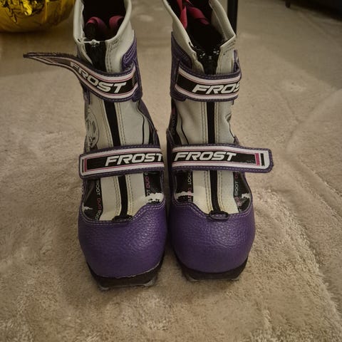 Frost langrennsstøvler for barn i lilla farge. Støvlene har borrelåslukking over vristen og foran på skaftet for enkel justering og god passform. Overdelen er laget i et syntetisk materiale.