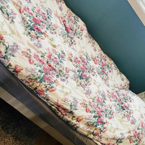 Er benyttet som dobbeltseng med sengegavel, og sengebøyler, overmadrass medfølges