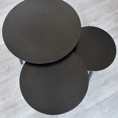 Brukt et par år, og har noen hakk etter støvsugeren. Disse er ikke synlige på avstand, og kan eventuelt flikkes i med tusj, maling eller bengalack. Alle mangler en skrue som ikke fulgte med som ny, men dette påvirker ikke funksjonen.