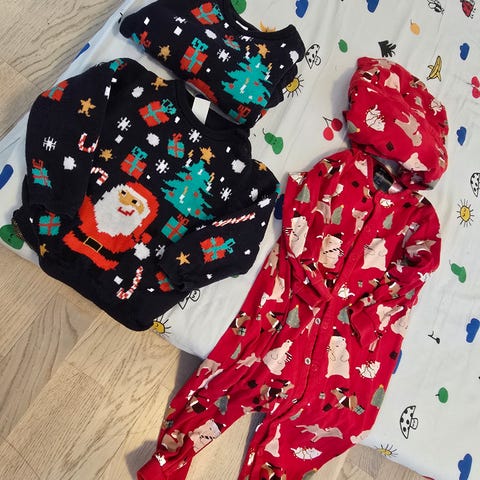 Tvillingmatch juleklær str 86/92 – 6 stk (nye gensere)