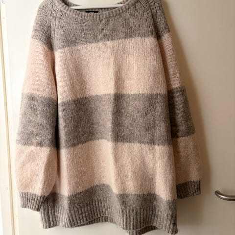 Taupe/Beige genser fra Freequent i et mykt materiale med prikkete mønster. Genseren har en enkel silhuett med lange ermer, avrundet hals og ribbekant.