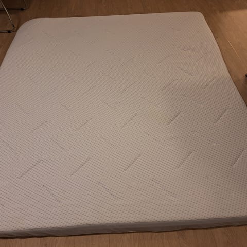 Madrassene har kun blitt brukt et par uker i en prøveperiode med madrass-beskytter. Eneste kosmetiske bruksmerke er et avtrykk/lett pigmentering på undersiden pga de har ligget på ramme av trepaller. Madrassen er dog ikke vendbar, så det ser man ikke.