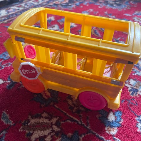 Dette er en leketøysbuss fra serien Engie Benjy (kjent som Mekke Mikkel på norsk), produsert av ERTL.