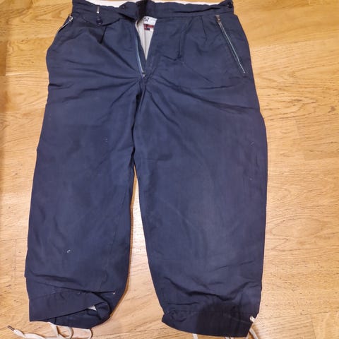 2 lommer v hofta Baklomme m glidelås og 2 lommer m knepping. Kan strammes og justeres v leggene. Detaljert søm.