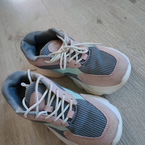 Skechers joggesko for jente i størrelse 39. Skoene er rosa og laget med overdel i tekstil og syntetisk materiale, med EVA/gummisåle. Modellen har snøring foran og polstret hælparti for bedre komfort. Passer til hverdagsbruk og lett aktivitet.