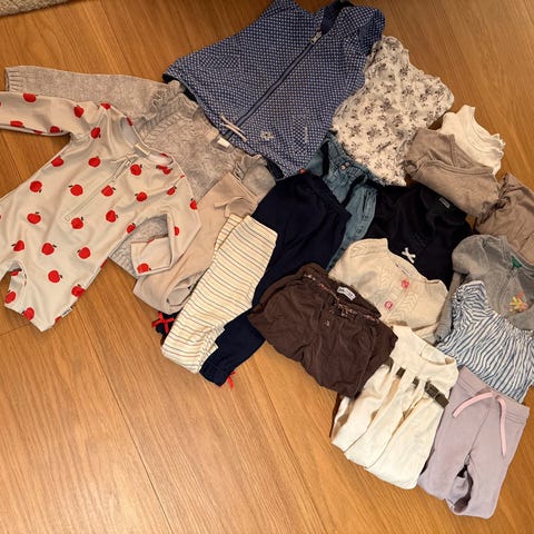 Klespakke til gutt i størrelse 74 selges. De fleste plaggene er i størrelse, men noen få er i 80. Det meste er pent brukt, men flekker kan forekomme. Pakken inneholder følgende: