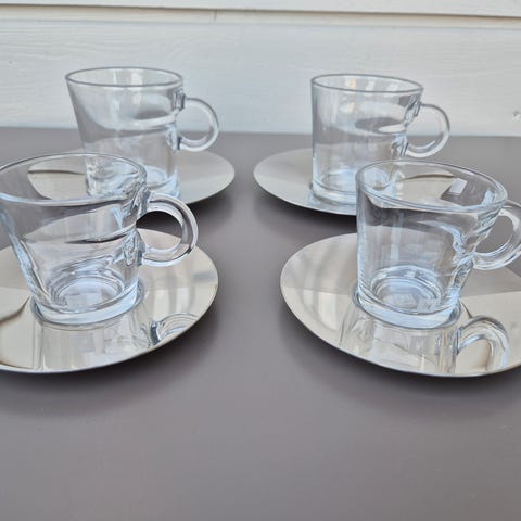 Jeg har dessverre ikke esken til dette settet fra NESPRESSO, men jeg har aldri tatt det i bruk. Det har stått pent stablet i skapet. Jeg har ikke engang kaffemaskin. Håper noen har lyst til å bruke det, for det er et lekkert sett med kopper til espresso og lungo. Bildet av esken det har ligget i er lånt fra nettet.