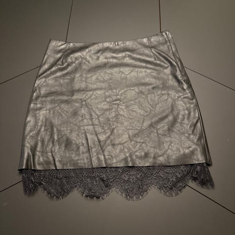 H&M Edition skinnskjørt for dame i størrelse 36. Skjørtet er svartbrun og laget i kunstskinnmateriale, brukes 2 ganger.