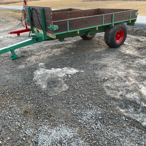 Helt grei henger med underliggende tipp, kledd innvendig med vannfast finer. Selges kr. 25.000. Kan ta innbytte som moped, malerier, små gamle gjenstander, grove materialer og mye mer. Bare spør! 911 02564.