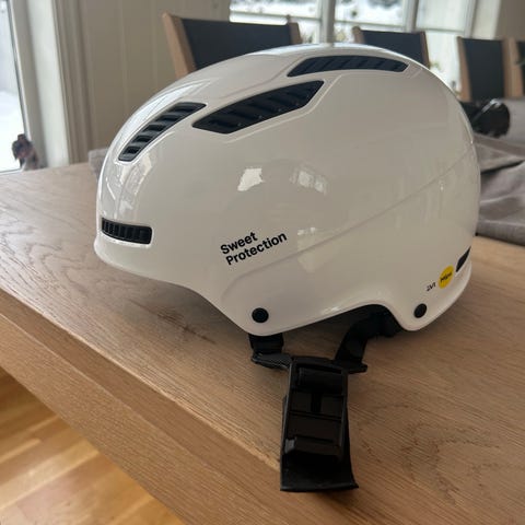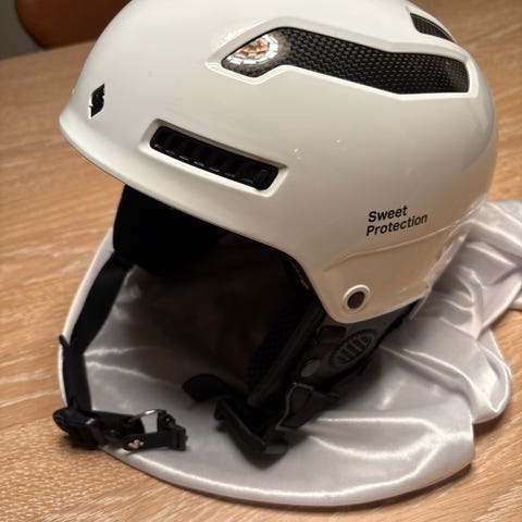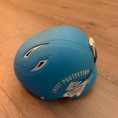 Sweet Protection Volata Mips TE skihjelm i størrelse S/M. Hjelmen er blå med sorte og hvite detaljer og har integrert Mips-teknologi. Modellen er utviklet for alpint og skikjøring, med hard ytterskall og innvendig polstring for komfort og støtdemping. Justerbar hakereim med hurtigspenne. CE-sertifisering i henhold til relevante standarder for alpinhjelmer, som angitt på hjelmen.