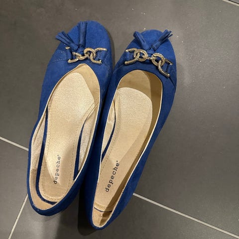 Skoene er flate ballerina-modeller som passer til hverdagsbruk og enklere penbruk. De har lukket tå og hæl, og er enkle å ta av og på. Sålen er lav og fleksibel, egnet for innendørs og lett utendørs bruk.