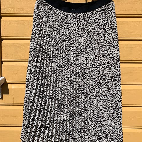 Plissert skjørt med leopardmønster, nydelige farger med metallic i mønsteret,
