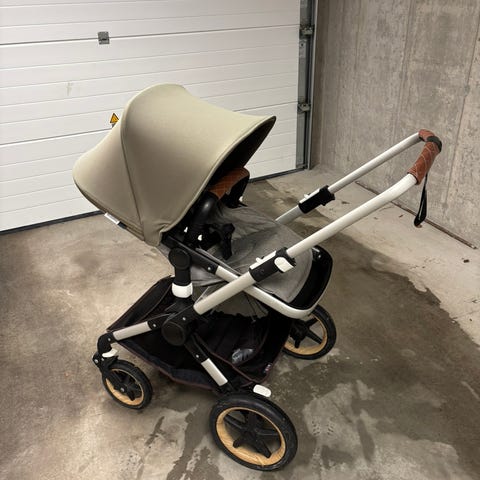 Kjempeflott barnevogn selges med masse tilbehør. Vognen er kjempegod på alt underlag, også snø fordi den ka låse hjulene. Ekstremt praktisk kurv under med god plass til utstyr eller handleposer!