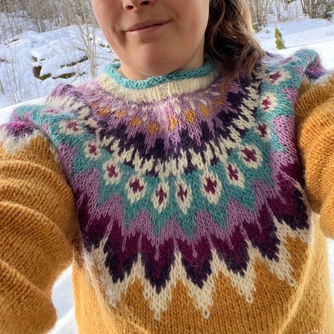 Helt ny hjemmestrikket Pudderpiken’s Buren genser.