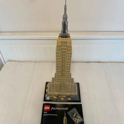 LEGO Architecture byggesett som forestiller Empire State Building. Settet består av klosser i hovedsakelig beige og mørke farger, og er laget for å bygge en detaljert modell av den kjente skyskraperen. Egner seg som utstillingsmodell og som del av en samling innen LEGO Architecture-serien.
