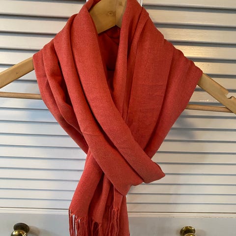 Ubrukt skjerf fra Vila, i en brent rødfarge.