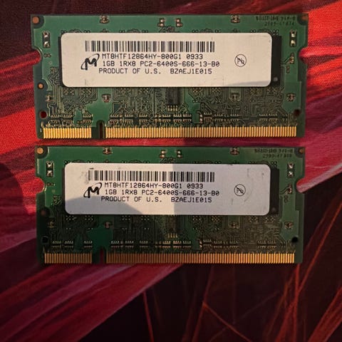 Hynix 2GB PC2-6400S RAM-modul for datamaskin. Kapasitet 2 GB, type DDR2 SO-DIMM med hastighet PC2-6400S (667 MHz). Egnet som minneoppgradering eller erstatning i kompatible bærbare PC-er eller andre enheter som støtter DDR2 SO-DIMM-moduler.
