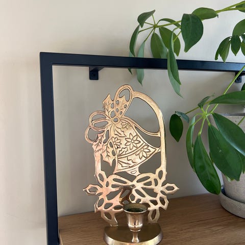 Retro, klassisk, styling, dekor, dekorasjon, stake, messingstake, messinglysestake, interiør, pynt, pyntegjenstand, messingpynt