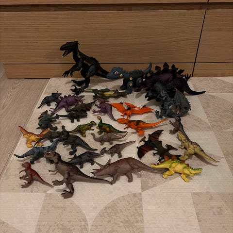 Se andre annonserDinosaur Set som inkluderer dinosaurfigurer og tilhørende egg. Settet består av flere deler som kan åpnes, og inneholder ulike dinosaurfigurer. Passer for barn som er interessert i dinosaurer og lek med figurer.