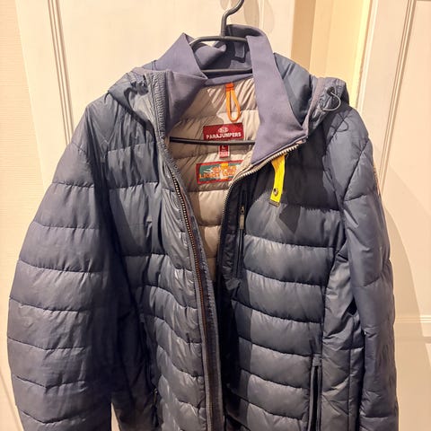 Pent brukt parajumpers jakke, har ikke bruksmerker. Hetten kan også brettes inn i kragen for en cleanere look.