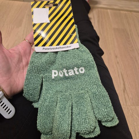 Hansker til å skrubbe poteter/rotgrønnsaker med.
