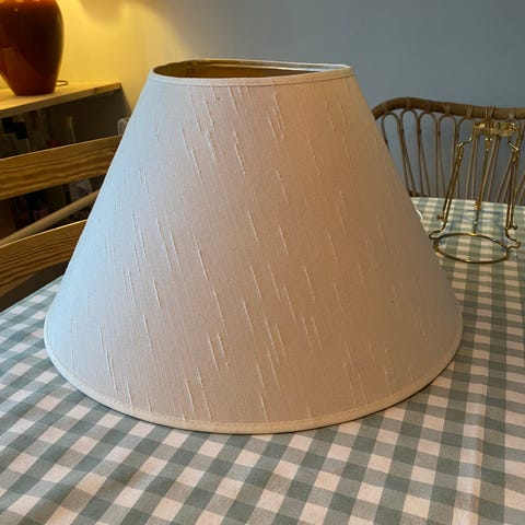 Kremfarget lampeskjerm til bordlampe. Pen og lite brukt. Ø 45