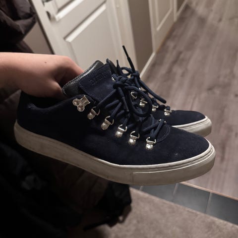 Diemme sneakers joggesko i størrelse 43. Skoen har lav modell og er i en beige fargetone. Overdelen har snøring med metallhemper, og sålen er kraftig med mønster for bedre grep. Egnet som hverdagssko og fritidssko.