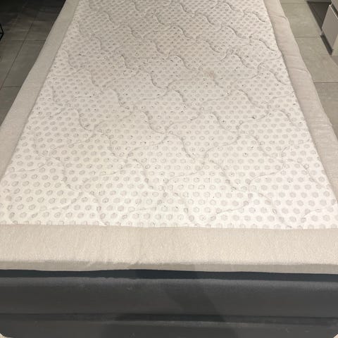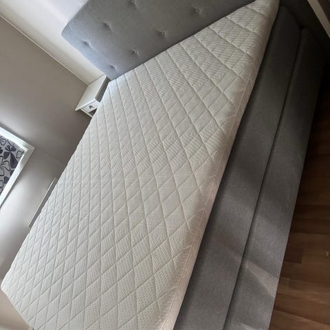 150 rammemadrass med wellpur overmadrass selges. Følger ikkje med bein på senga. Sjølve ramma er 2 delt.