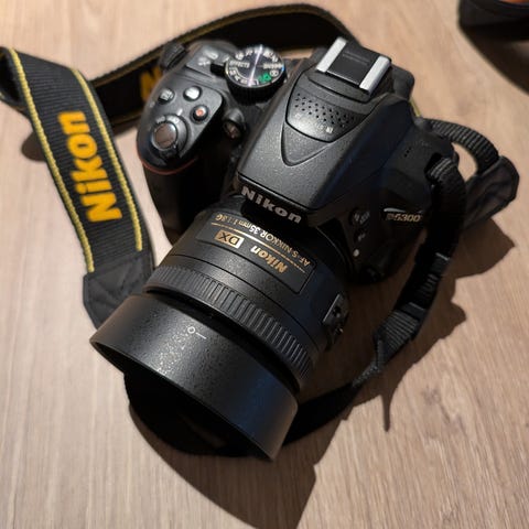 Nikon D5300 digitalt speilreflekskamera med utskiftbart objektiv. Kameraet er et digitalt SLR fra Nikon, egnet for fotografering i ulike situasjoner. Det følger med kameraveske, skulderrem, lader, brukerveiledning og programvare på CD.