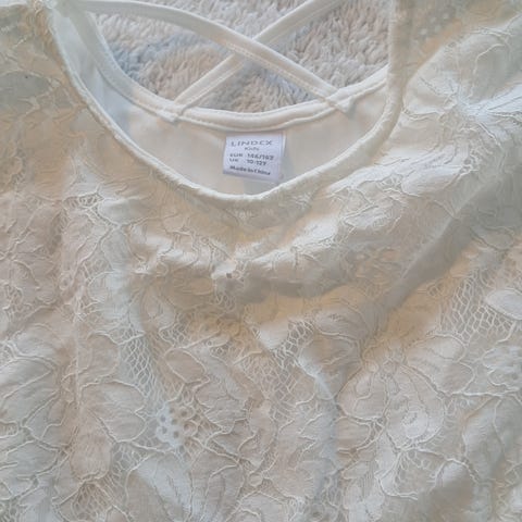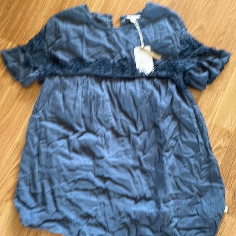 Mørk blå blonde topp fra WOW. (Butikken finnes ikke i stavanger lenger) M-L mener jeg at var 10-12...?