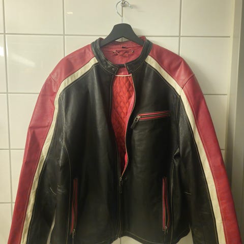 Germot skinnjakke motorsykkel herre str. 52 rød/hvit/svart