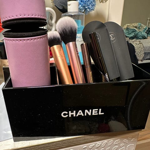 Chanel sminkebørstesett med etui i svart.