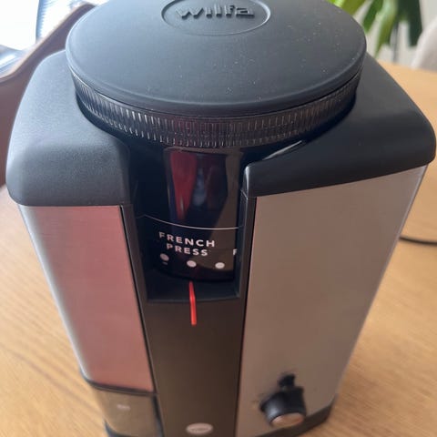Selger en pent brukt Wilfa Uniform kaffekvern (modell WSFB-100S) i rustfritt stål. Den er kjøpt i desember 2022, det er ingen tegn til funksjonsslitasje, men er noe kosmetisk slitasje på tallene (se bilde 2)