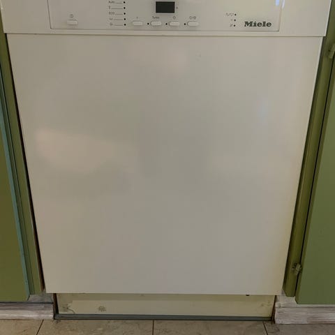 Oppvaskmaskinen er beregnet for innbygging under benk og har hvit front. Innvendig er den utstyrt med øvre og nedre kurv med tallerkenstativ, glass- og koppstativ samt bestikkurv.