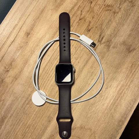 Apple Watch SE (2. generasjon) smartklokke med 40 mm urkasse i aluminium og svart sportsreim. Modellen har GPS og kjører watchOS. Klokken leveres med original magnetisk ladekabel og eske, slik det vises på bildene. Egnet for daglig bruk med funksjoner som aktivitets- og helsesporing, varsler fra telefon og andre standard Apple Watch-funksjoner for SE-serien.