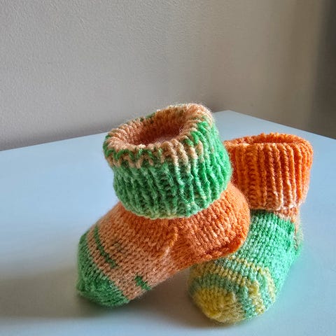Sennepsgul, høst, vinter, baby, sokker, strikkesokker, babylabber, tøfler, babysko, babybooties, booties, babyklær, ull, strikket, håndstrikket, håndlaget, epla, mimi,