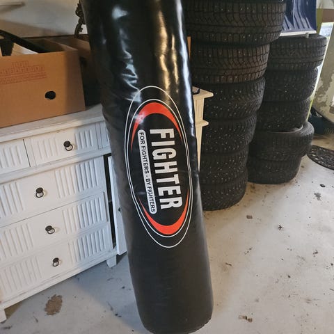 Fighter boksebag i svart farge. Bagen har opphengsfester i toppen for kjede eller krok. Egnet til boksing og kampsporttrening hjemme eller på treningssenter. Yttermaterialet er i slitesterkt kunstskinn eller tilsvarende materiale. Størrelsen er på 105x33cm